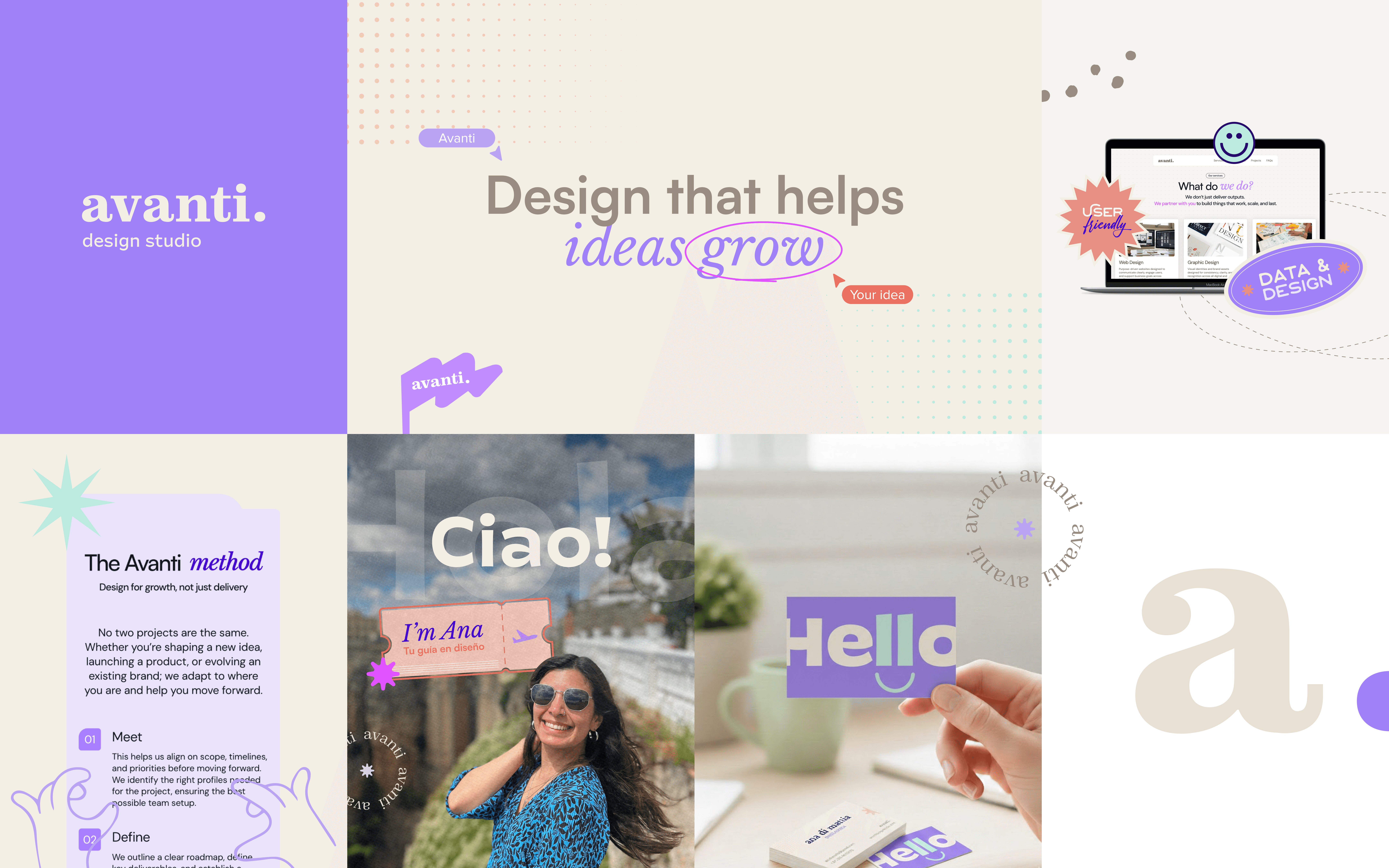 Avanti is my personal design studio, a brand built around clarity, movement, and intentional growth. The goal was to create a visual and verbal identity that feels confident yet approachable, strategic yet human.